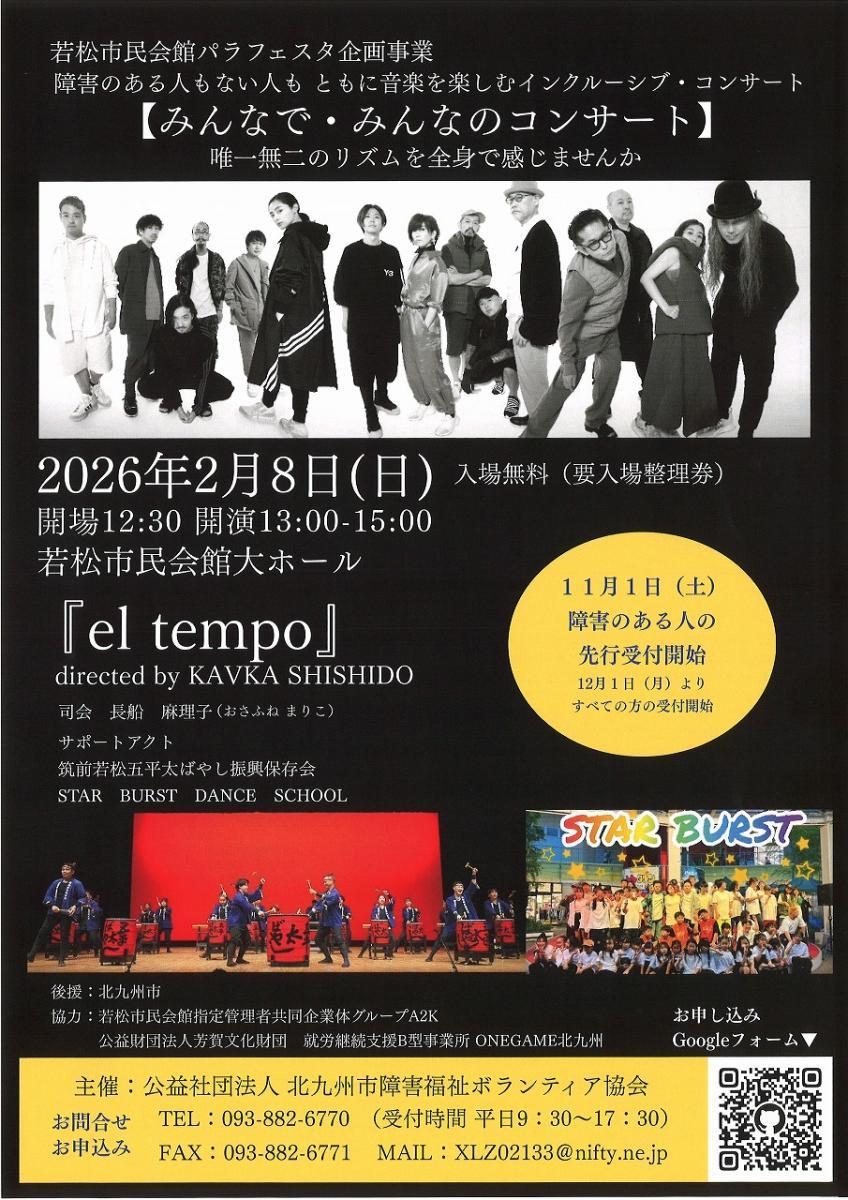 若松市民会館パラフェスタ企画事業 障害のある人もない人も ともに音楽を楽しむインクルーシブ・コンサート 唯一無二のリズムを全身で感じませんか