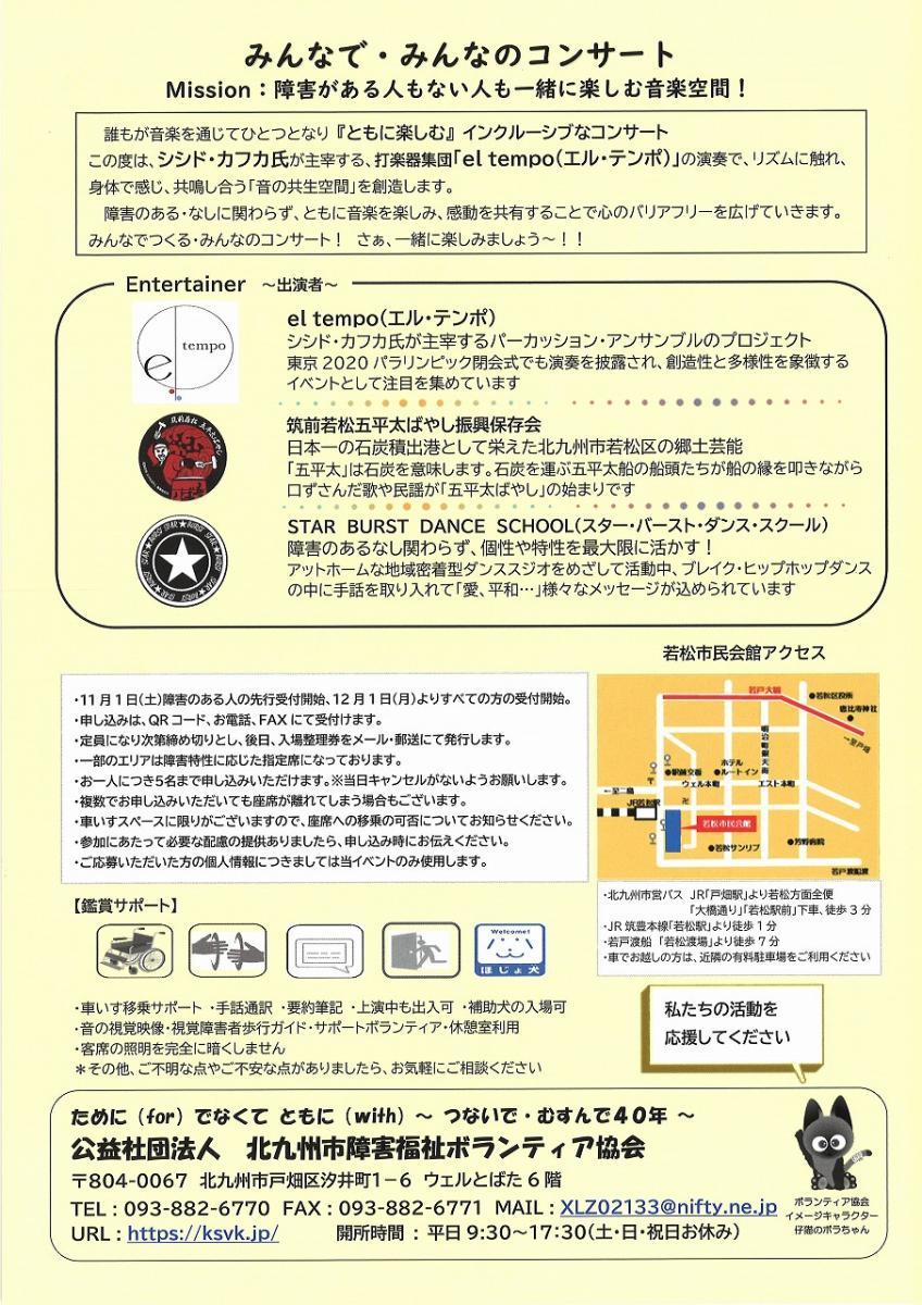 若松市民会館パラフェスタ企画事業 障害のある人もない人も ともに音楽を楽しむインクルーシブ・コンサート 唯一無二のリズムを全身で感じませんか