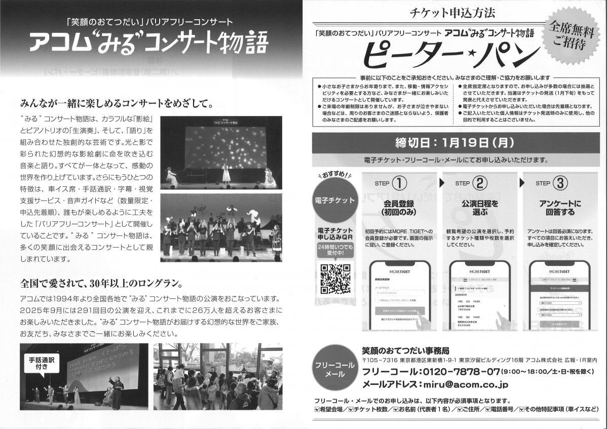 - 「笑顔のおてつだい」バリアフリーコンサート アコム”みる”コンサート物語『ピーターパン』