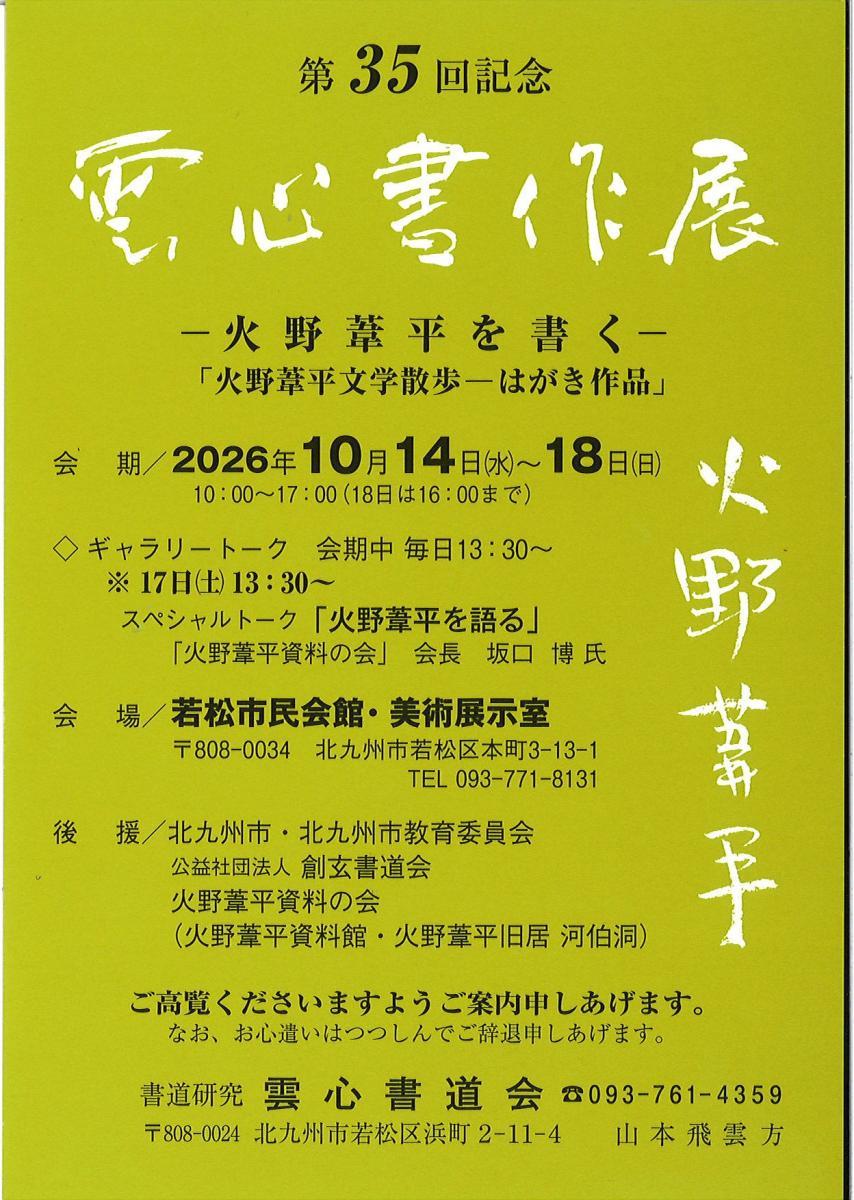 後援/北九州市・北九州市教育委員会、公益社団法人 創玄書道会、火野葦平資料の会(火野葦平資料館・火野葦平旧居 河伯洞)